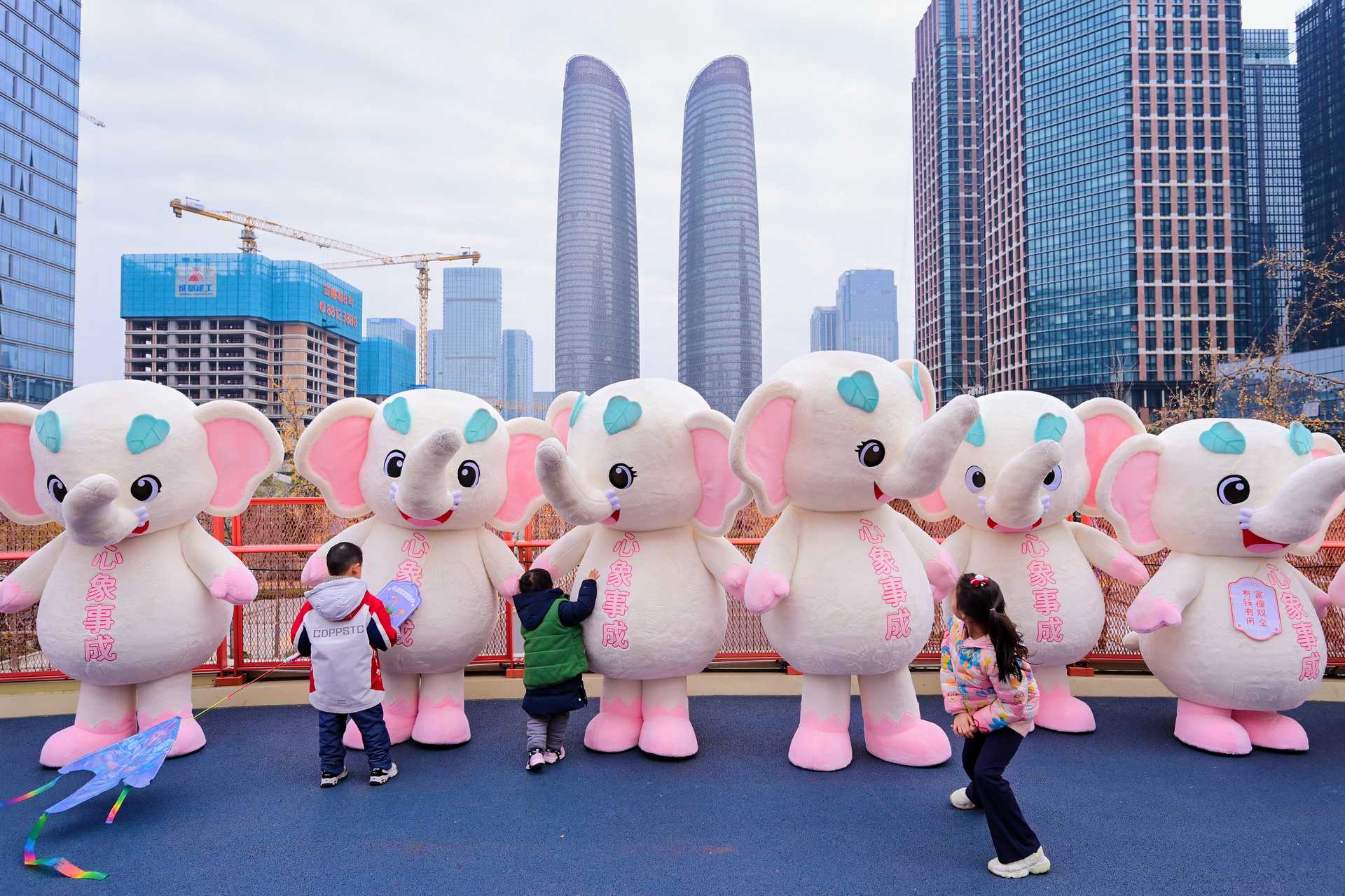巡游現(xiàn)場熱度直接引爆全城,27只小福象沿街靈動穿梭,每一步都自帶萌系暴擊,瞬間俘獲所有市民游客的目光,將交子大道的冬日氛圍推向頂峰?蓯鄣纳硇、靈動的姿態(tài)引得孩童們歡呼雀躍,紛紛追著福象奔跑嬉戲,童真笑語灑滿整條街;成年人也難抵萌趣誘惑,紛紛駐足打卡,爭相與福象擊掌互動、親密合影,用鏡頭定格這份冬日美好,在溫馨互動中寄托自己的冬日心愿,現(xiàn)場歡聲笑語此起彼伏,熱鬧氛圍堪稱空前。成都市民李女士滿心歡喜地說道:“孩子徹底被小福象迷住了,吵著鬧著非要立刻去峨眉山看雪耍樂,這份冬日期待直接拉滿!”市民紛紛表示被小福象徹底圈粉,峨眉山冬日之旅已成必打卡清單TOP1。