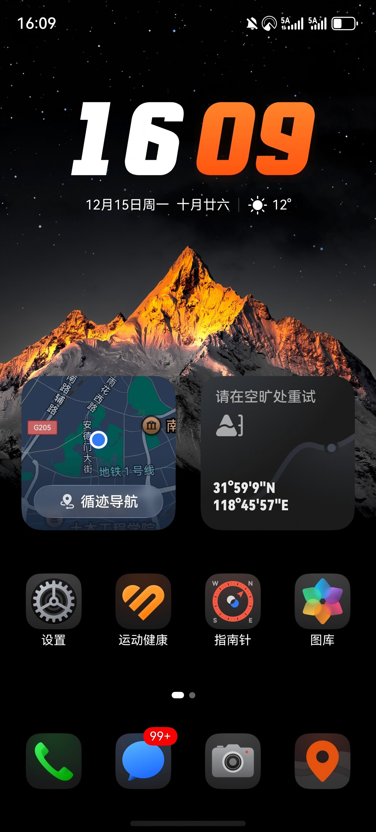 除此之外,我還留意到一個很貼心的設計:開啟戶外探索模式后,桌面上的天氣時鐘組件會自動切換成“戶外版”——字體變得粗大清晰。在戶外徒步中,只需瞥一眼屏幕,快速知曉時間、氣溫等。