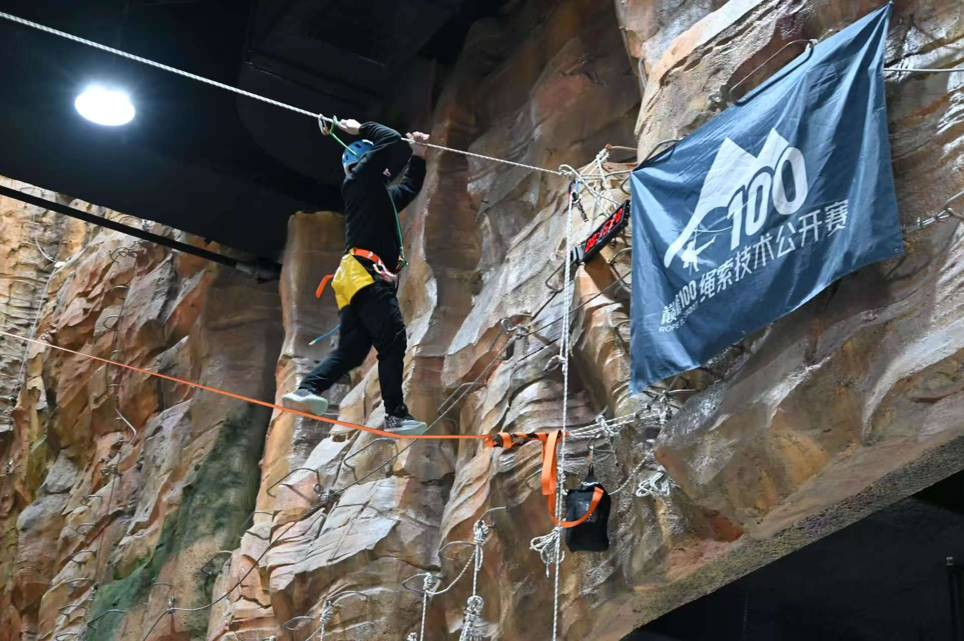 首屆“天恒文旅·恒探界室內(nèi)探險(xiǎn)旅游節(jié)”內(nèi)容設(shè)計(jì)兼顧專業(yè)性與大眾性,強(qiáng)調(diào)參與感與體驗(yàn)性。其中,“大眾繩索探險(xiǎn)趣味賽”作為貫穿活動(dòng)始終的核心板塊,將面向14至60周歲的廣泛人群開(kāi)放。賽事設(shè)置高空走扁帶、通天戰(zhàn)繩、橫渡繩橋、扁帶躺繩四項(xiàng)趣味項(xiàng)目,參賽者可在專業(yè)教練指導(dǎo)與完善安全防護(hù)下體驗(yàn)繩索運(yùn)動(dòng)的樂(lè)趣。活動(dòng)采用預(yù)選賽與總決賽機(jī)制,參與者可重復(fù)挑戰(zhàn)刷新成績(jī),優(yōu)勝者將獲得獎(jiǎng)勵(lì)。這一低門檻、高趣味的賽事設(shè)計(jì),有效降低了專業(yè)戶外運(yùn)動(dòng)的參與壁壘,是推動(dòng)全民健身向生活化、趣味化延伸的有益探索。