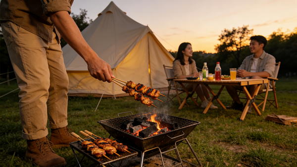▲露營(yíng)炭烤▲