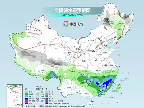 后天,暖濕氣流再度加強,南方降雨又會增多、增強。預計,內(nèi)蒙古東北部、黑龍江大部、吉林西北部和東部、新疆南疆盆地南部、西藏中北部、青海南部、川西高原北部等地部分地區(qū)有小雪或雨夾雪,其中,內(nèi)蒙古東北部、黑龍江北部、西藏北部、青海南部、川西高原北部等地部分地區(qū)有中到大雪,內(nèi)蒙古東北部局地暴雪。重慶南部、貴州東北部、江南大部、華南北部和東部以及西藏東南部等地部分地區(qū)有中到大雨,其中,湖南西部和南部、江西南部、福建西部、廣東中北部等地部分地區(qū)有暴雨,局地大暴雨。