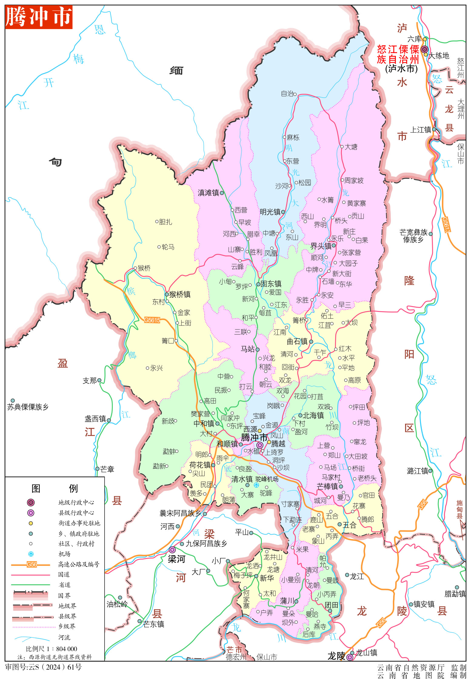 騰沖市轄2個街道、12個鎮(zhèn)、5個鄉(xiāng):