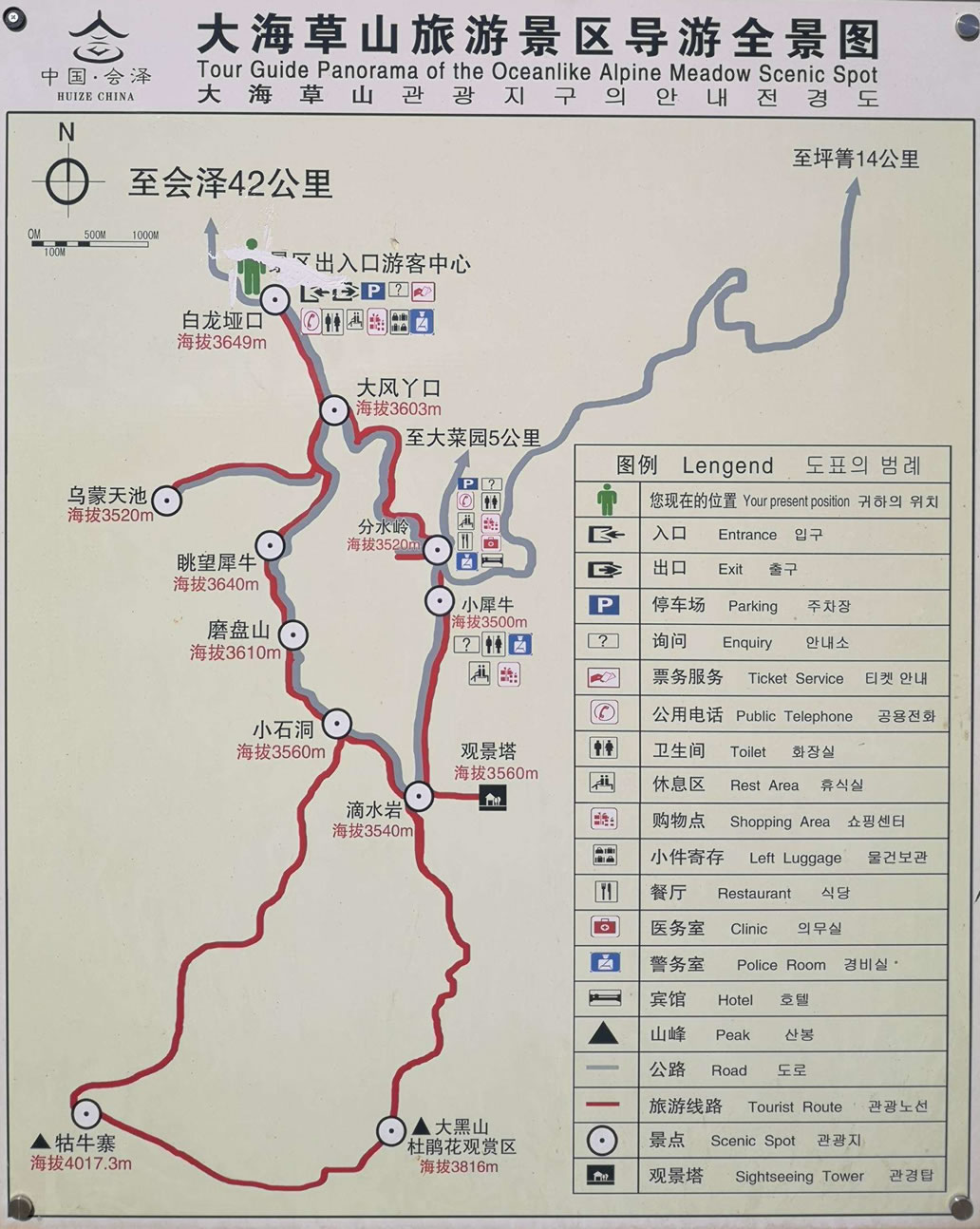 會澤大海草山位于云南省曲靖市會澤縣大海鄉(xiāng)東南部,屬烏蒙山系主峰段,海拔在3570--4017米之間,其最高峰牯牛寨(即絳云弄山)海拔4017.3米,是烏蒙山系的最高峰,唐朝時南詔國王封為東岳。