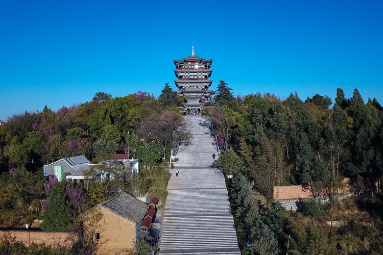 三臺山位于滇池東岸,海拔高度1956米,因山勢三疊成臺而得名。中臺形如鳳翥,又稱鳳嶺。滿山松柏蔭翳,古木參天,為呈貢十六景之一。三臺山是觀賞滇池全貌的最佳點之一,園內有望海廊、東驤閣。