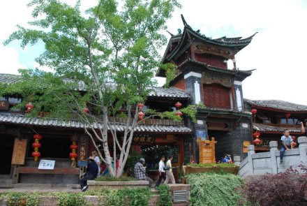 木府原為麗江世襲土司木氏的衙署,位于古城獅子山東麓,始建于元代(公元1271~1368年),1998年重建后改為古城博物院。木府占地46畝,府內(nèi)有大小房間共162間,中軸線長369米,三清殿、玉音樓、光碧樓、護(hù)法殿、萬卷樓、議事廳、忠義坊由西向東排列井然。其內(nèi)懸掛有歷代皇帝欽賜的匾額十一塊,反映了木氏家族的盛衰歷史。講述麗江木氏土司風(fēng)云故事的電視劇《木府風(fēng)云》就是在這里拍攝的。