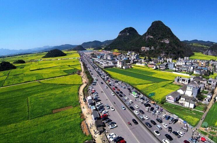 位置 羅平縣隸屬云南省曲靖市,境東西寬75公里,南北長99公里,面積3018平方公里,其中山區(qū)面積占78%;東沿黃泥河為界與貴州省興義市接壤;東南以南盤江、清水江為界,與廣西壯族自治區(qū)西林縣隔河相望;西南與師宗相鄰;西至北界,分別與陸良、麒麟、富源三縣(區(qū))毗鄰。西距省城昆明207公里,北距曲靖市120公里,東至貴州省興義市86公里,南距廣西壯族自治區(qū)西林縣城156公里。