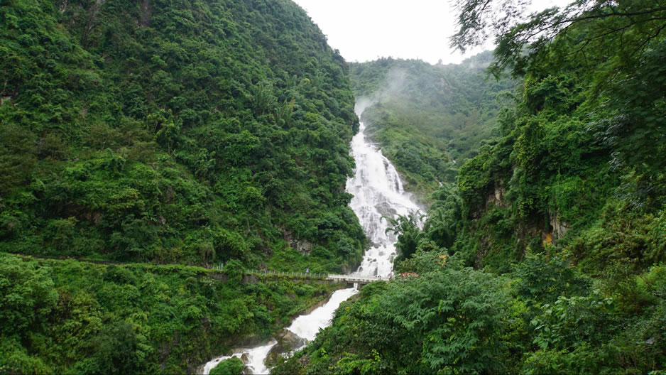 南恩瀑布位于恩水公路旁,整個瀑布群分布在巨大的巖石板上,最寬處十余米,落差達100米。