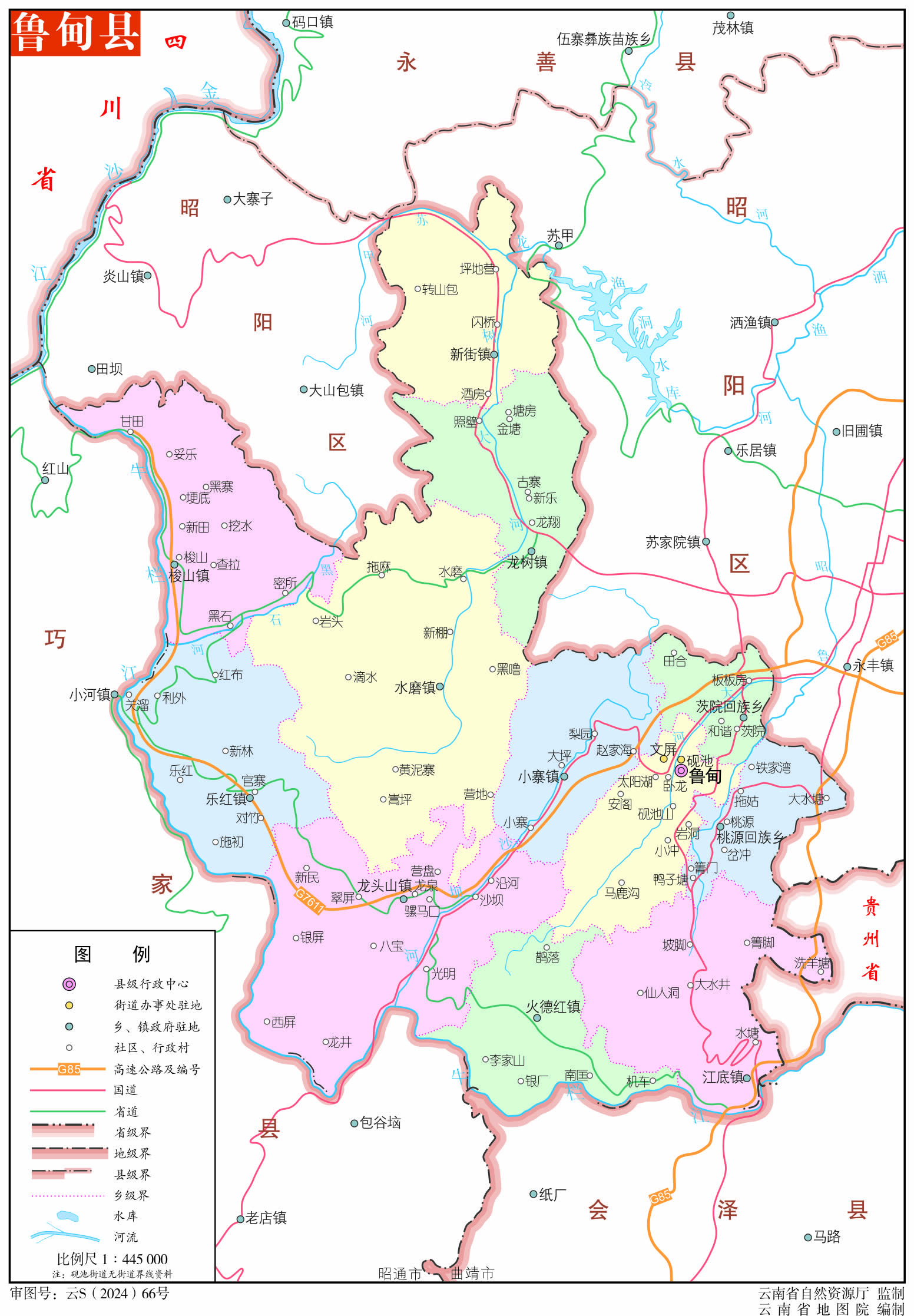 位置境域 魯?shù)榭h,位于云南省東北部,昭通市西南部,牛欄江北岸。東北與昭通市接界,東南與貴州省威寧彝族回族苗族自治縣毗鄰,南部和西部與會澤、巧家兩縣隔牛欄江相望?h人民政府駐文屏鎮(zhèn),距昭通市政府所在地昭陽區(qū)27公里,距省會昆明市310公里。縣境東西橫距50公里,南北縱距60公里。面積1484平方公里。