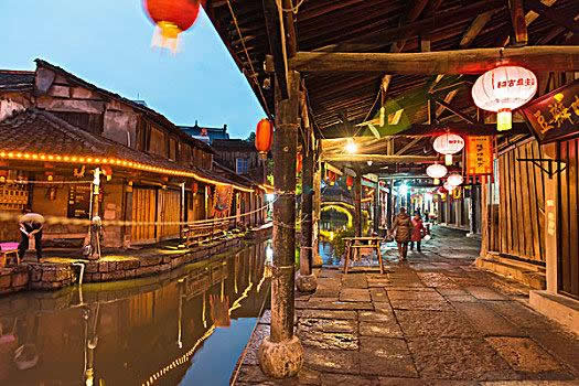 除了臘月節(jié)活動,安昌民俗里最引人注目的,還有傳統(tǒng)的水上婚禮。水上婚禮是當?shù)氐膫鹘y(tǒng)習俗,按照慣例,男方的彩禮要在前一天下午用木船送到女方家中。第二天一早,新娘要穿一身喜氣的紅棉襖,平底繡花鞋,還要戴上鳳冠,當然,紅蓋頭是不可少的。迎親的船隊一到,新娘就在家人的護送下登上喜船,坐進船上的紅轎子里,一路鞭炮、鑼鼓響起,非常熱鬧。迎親船隊在狹窄的水巷中穿行,引得觀者無數(shù)。當然,我們無緣融入這熱鬧之中,只能從文字或圖片中以窺一斑。只不過,看似簡單的小鎮(zhèn),其實在不同時候來都會在不經意間帶給我們更多驚喜。