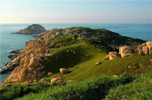南麂列島主島南麂島,別名海山,古代又寫作“南己山”,外形似麂,頭朝西北,尾向東南,海岸線曲折,計長24.8公里,周圍有龍嘴頭等5個呷角和國姓澳、馬祖澳、火昆澳3個海灣及港灣南麂港。海水終年清澈湛藍,巖石受海浪長期侵蝕沖擊,形成海蝕崖、柱、穴、平臺等景觀,有大沙岙(澳)、國姓澳(岙)、三盤尾等景區(qū),人稱“碧海仙山”。