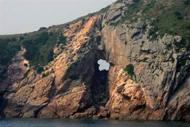 說起南麂列島的絕景,天然壁畫應是“首絕”,這又是大自然杰作。位于三盤尾南部東側峭崖處,是原杭州大學張友良教授首先發(fā)現(xiàn)。畫壁寬約40米,高30余米,氣勢恢宏,層次分明,被專家譽為“國寶”和東海奇觀。就在礁石錯落,白浪排空處,高矗著一幅石屏風,整個巖面宛然是一幅天然山水畫,其中一尾大龍蝦栩栩如生,十分逼真。歷來山水畫家?guī)煼ㄗ匀,又常贊美自然景物為“天開圖畫”。眼前,這天然壁畫給人帶來意外的美的享受。