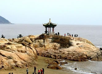 普陀山,位于浙江省舟山市普陀區(qū),杭州灣南緣,舟山群島東部海域,相傳是觀世音菩薩教化眾生的道場。普陀山地形呈菱形狀,是舟山群島1390個島嶼中的一個小島,形似蒼龍臥海,面積12.52平方千米,與舟山群島的沈家門隔海相望,素有“海天佛國”、“南海圣境”之稱,南北長8.6千米,東西寬約3.5千米,岸線長30千米。中部佛頂山天燈臺最高,海拔291.2米,向四面延伸,西為茶山,北為伏龍山,東為青鼓壘山,東南為錦屏山、蓮臺山、白華山,西南為梅岑山,主峰均在100至200米間,連綿起伏。