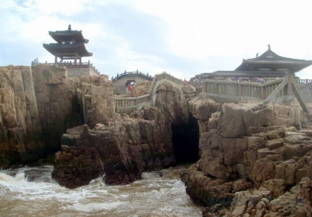 潮音洞口朝大海,呈張口狀。日夜為海浪所擊拍,潮水奔騰入洞口。若遇大風(fēng),浪花飛濺,浪沫直沖“天窗”之上。如是晴天,洞內(nèi)七彩虹霓幻現(xiàn)。