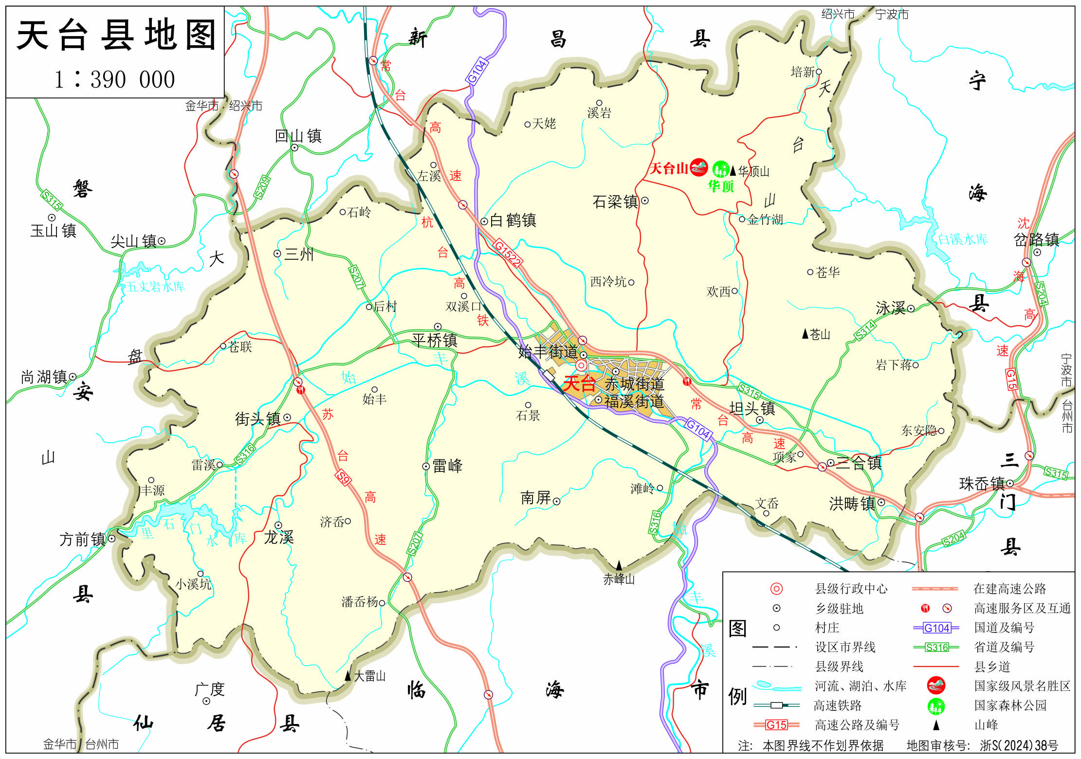 天臺縣轄3個(gè)街道、7個(gè)鎮(zhèn)、5個(gè)鄉(xiāng):