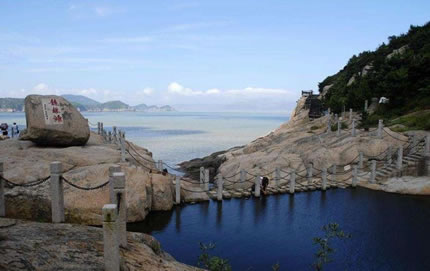 千步金沙——長(zhǎng)1370米,寬400余米,從面積來說,是舟山群島第二大沙灘。從沙質(zhì)方面來書是進(jìn)行海浴、沙浴、陽(yáng)光浴和沙灘漫步較理想、優(yōu)質(zhì)的沙灘。千步金沙屬細(xì)型沙質(zhì),細(xì)軟純凈,與普陀山的白步沙、千步沙和嵊泗的基湖沙灘相比較要細(xì)軟得多,與朱家尖的東沙、南沙相似,但還要松軟一些,且沙灘上沿有部分植被覆蓋,這一點(diǎn)其它沙灘是很難找到的。