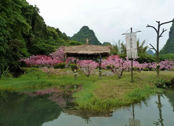 桃花寨——位于桃花峪景區(qū)中心位置,占地面積約2平方公里,這里綠樹成蔭,清溪曲橋,環(huán)境幽靜,是休閑憩息佳處。杏黃旗、紅燈籠、好漢曲,讓你仿佛置身于武俠文化世界;藥師精舍、靖哥居、蓉兒茶莊,讓你領(lǐng)情領(lǐng)略金庸小說“情”“緣”“義”的真諦。