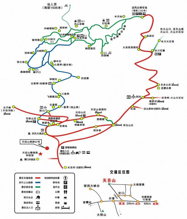 4、天目山景區(qū)內(nèi)須換乘景區(qū)觀光車,上下山30元/人,步行上山的游客,下山也可在龍鳳尖停車場(chǎng)換乘觀光車下山,15元/人。