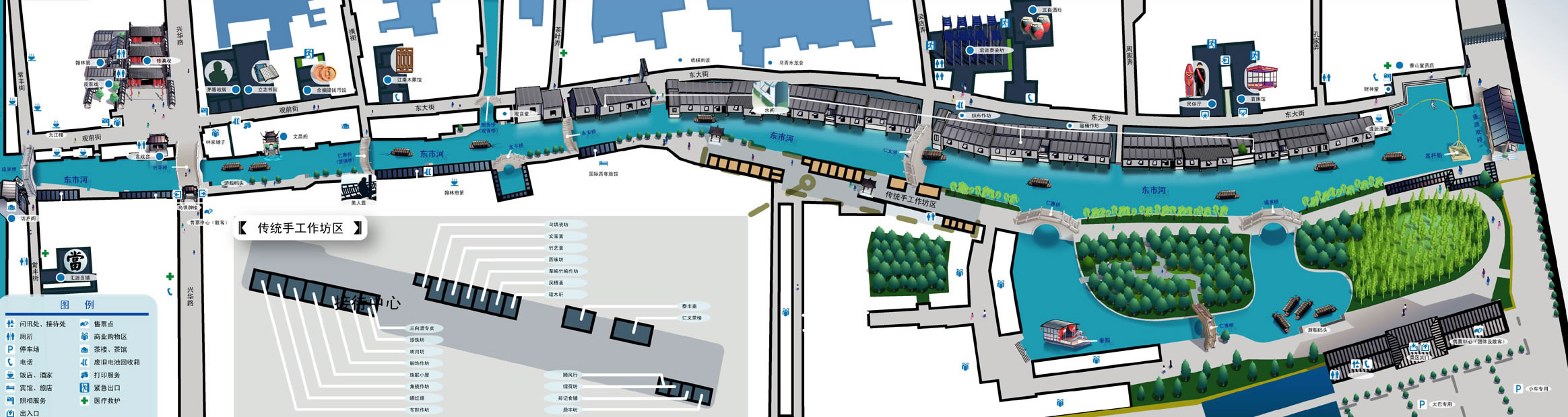 烏鎮(zhèn)街、坊、巷的數(shù)量和規(guī)模非同小可,俗稱有四門八坊數(shù)十巷。八大街為常春里大街、澄江里大街、通里大街、南大街、中大街、北大街、觀前街和東大街。