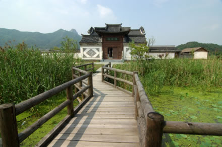 陸家莊在《神雕俠侶》中是陸展元、陸立鼎兩兄弟的莊院,小說第一回中寫道的故事情節(jié)就是在這府院發(fā)生的。陸家莊是影城中相對獨立的一個景點,主要由碼頭、風(fēng)雨亭、路棚、陸家莊院和農(nóng)戶院組成。這里三面有湖,展現(xiàn)的是古代農(nóng)村自然淳樸的風(fēng)格和農(nóng)家田園風(fēng)光。