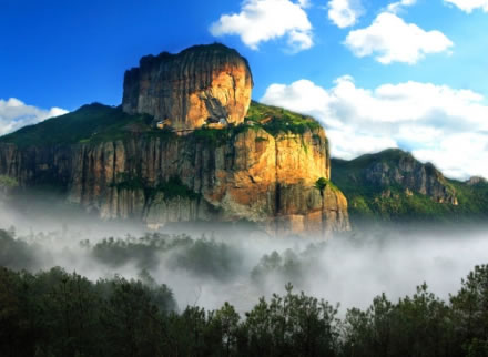 南雁蕩山,簡稱南雁,位于平陽縣西部,距溫州市區(qū)87千米。主峰明王峰,海拔1080米,山頂有泥塘沼澤,秋科時節(jié)有大雁在此棲息,且與北雁蕩山遙望相對,故名南雁蕩。南雁蕩山總面積97.68平方千米,群巒疊翠,飛瀑溪潭,共有67峰、28巖、24洞、13潭、8潭、9石。南雁蕩的開發(fā)較早于北雁蕩,五代時高僧愿齊就率三百名門徒在此開發(fā)。