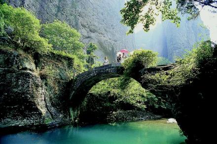 顯勝門景區(qū)范圍呈東北西南走向的狹長形。主要景點基本都分布在沸頭—南閤溪兩岸。徐霞客曾在游記中寫道:“溪北大山,自籍裊迤邐而來,皆層崖怪峰,變換闔辟,與云霧爭幻。”可謂一語中的,道出了該區(qū)風(fēng)景的特點。