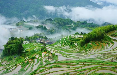 云和梯田景區(qū)屬亞熱帶季風氣候區(qū),溫度濕潤,四季分明,因地形較為復(fù)雜,海拔高度懸殊,氣候垂直分布明顯。據(jù)氣象部門20年資料統(tǒng)計表明,年平均氣溫16.5℃,極端最低溫度-7℃,無霜期平均227天,雨量充沛,年降水量1780~1900mm,主要集中在5~10月,期間由臺風登陸會造成暴雨及山洪暴發(fā),兼有大風、冰雹等異常災(zāi)害性天氣。光照充足,平均年日照時數(shù)1774.4小時,晝夜溫差較大。
