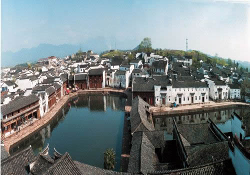 諸葛八卦村原來(lái)叫高隆村,位于浙江省金華市蘭溪市西部。諸葛八卦村一帶地形如鍋底,中間低平,四周漸高。四方來(lái)水,匯聚鍋底,形成一口池塘,這就是鐘池。鐘池是諸葛八卦村的核心所在,也是布列“八陣圖”的基點(diǎn)。鐘池并不大,但這口水塘半邊有水,半邊為陸,形如九宮八卦圖中的太極,奇妙無(wú)比。