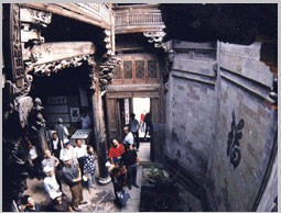 以鐘池為中心,有八條小巷向四面八方延伸,直通村外八座高高的土崗,其平面酷似八卦圖。小巷又派生出許許多多橫向環(huán)連的窄弄堂,弄堂之間千門(mén)萬(wàn)戶,星羅棋布著許多古老縱橫的民居。接近鐘池的小巷較為筆直,往外延伸時(shí)漸趨曲折,而許多小巷縱橫相連,似通非通,猶如迷宮一般。外人進(jìn)入小巷,往往好進(jìn)難出,甚至迷失方向。